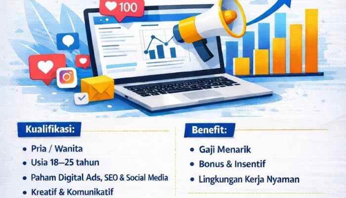 Jika Anda memahami dunia iklan digital, optimasi mesin pencari (SEO), dan pengelolaan media sosial, inilah saat yang tepat untuk menunjukkan keahlian Anda dan tumbuh bersama tim yang dinamis di lingkungan kerja yang nyaman.