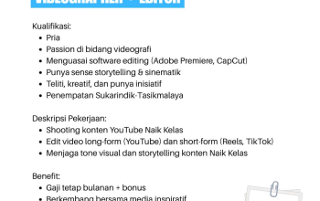 - Pendidikan: Minimal S1 semua jurusan, namun lulusan Ilmu Komunikasi lebih diutamakan.