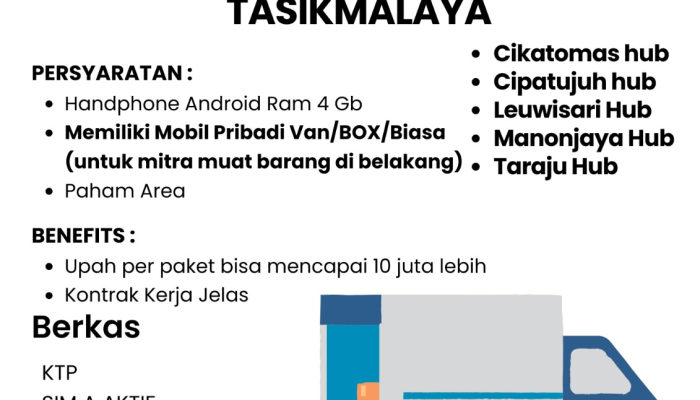 Selamat datang di kesempatan karir yang menarik! Apakah Anda memiliki mobil pribadi, menguasai area Tasikmalaya, dan sedang mencari peluang untuk meningkatkan penghasilan Anda secara fleksibel? PT Personel Alih Daya (Persada) membuka peluang emas bagi Anda yang ingin bergabung sebagai Driver Mobil Mitra di wilayah Tasikmalaya. Raih potensi penghasilan per paket yang menggiurkan dan jadilah bagian dari mitra pengiriman terpercaya! Segera baca kualifikasi dan cara daftarnya di bawah ini.
