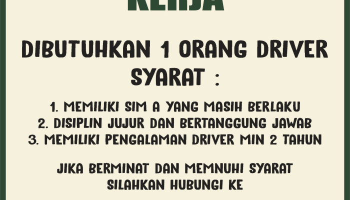 • Pengalaman: Memiliki pengalaman kerja sebagai Driver minimal selama 2 tahun.