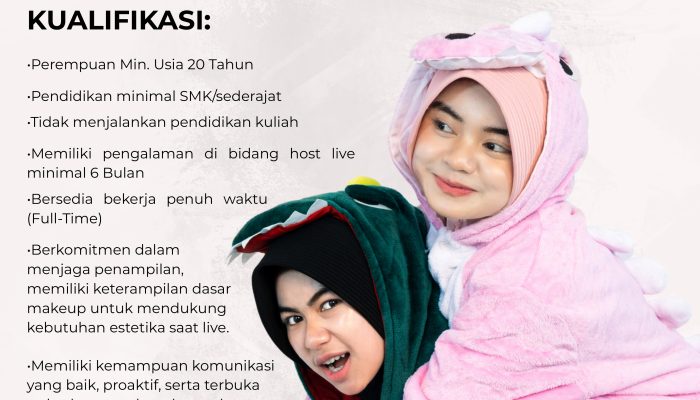 - Wajib memiliki pengalaman di bidang Host Live minimal 6 bulan.