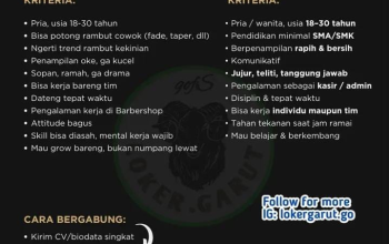 Deadline Lamaran: Segera kirimkan lamaran atau hubungi kontak tersebut karena kuota terbatas dan lowongan dapat ditutup sewaktu-waktu jika posisi telah terpenuhi.