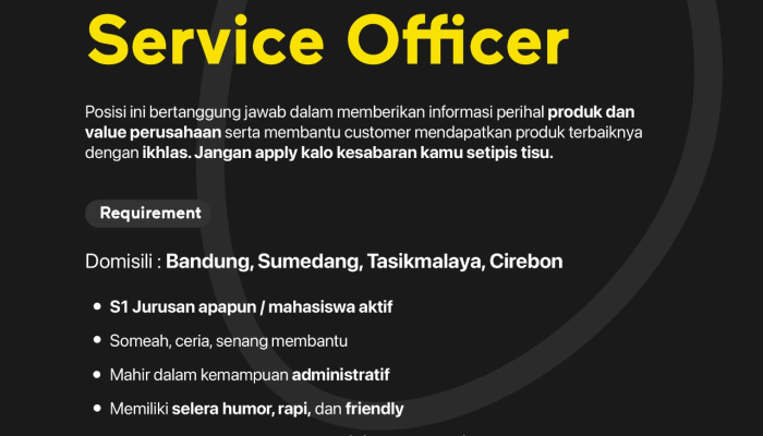 • Pendidikan: Minimal lulusan S1 Semua Jurusan atau terbuka bagi Mahasiswa Aktif.