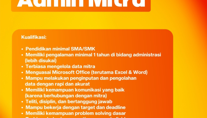 - Admin Mitra: Berpengalaman mengelola data mitra dan memiliki kemampuan komunikasi yang baik.