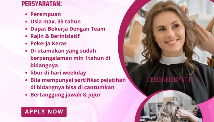 - Pengalaman: Diutamakan bagi yang sudah memiliki pengalaman minimal 1 tahun di bidang hair styling/potong rambut.