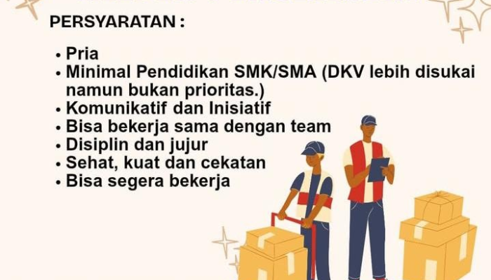 • Pendidikan: Minimal lulusan SMK/SMA sederajat (Lulusan DKV lebih disukai, namun bukan prioritas).