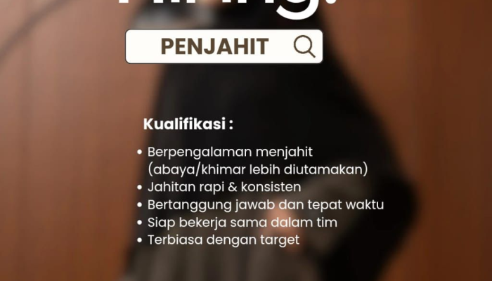 - Memiliki pengalaman dalam menjahit (pengalaman menjahit Abaya/Khimar lebih diutamakan).