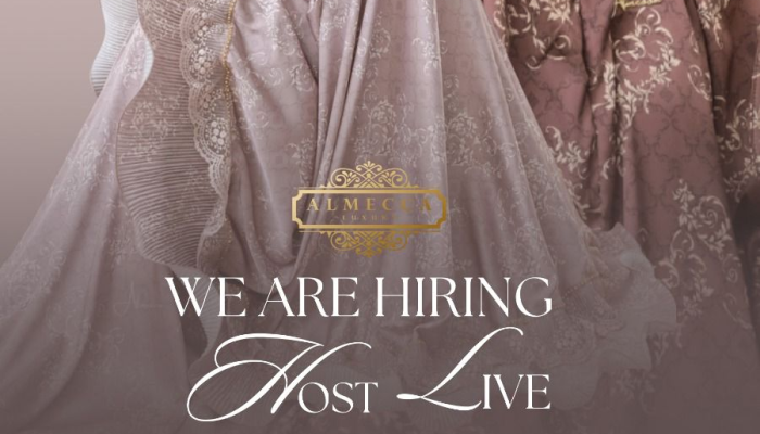Apakah Anda seorang wanita muda yang percaya diri di depan kamera dan ingin berkarir di industri fashion muslim? Almecca, brand mukena eksklusif yang sedang berkembang pesat, kini membuka kesempatan bagi talenta berbakat untuk bergabung sebagai Host Live. Jika Anda memiliki kemampuan komunikasi yang menarik dan ingin bekerja dalam lingkungan yang dinamis, inilah kesempatan emas untuk meraih karir impian Anda di Kota Tasikmalaya!