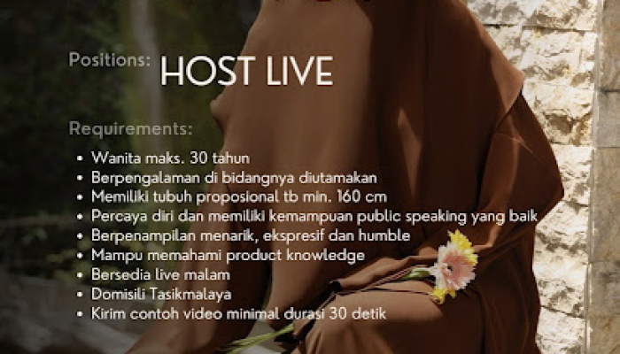 - Pendidikan & Pengalaman: Diutamakan bagi pelamar yang memiliki pengalaman di bidang yang relevan (Host/Public Speaking).