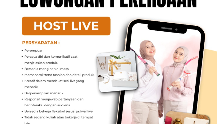 Apakah Anda seorang perempuan yang percaya diri, komunikatif, dan memiliki passion di dunia fashion serta live streaming? AYA Official Store membuka kesempatan emas bagi Anda untuk menjadi Host Live! Posisi ini menawarkan fleksibilitas kerja, fasilitas mess, dan kesempatan untuk menampilkan kreativitas Anda di depan audiens. Jika Anda memahami tren fashion, detail produk, dan siap berinteraksi dengan responsif, segera kirimkan CV Anda!