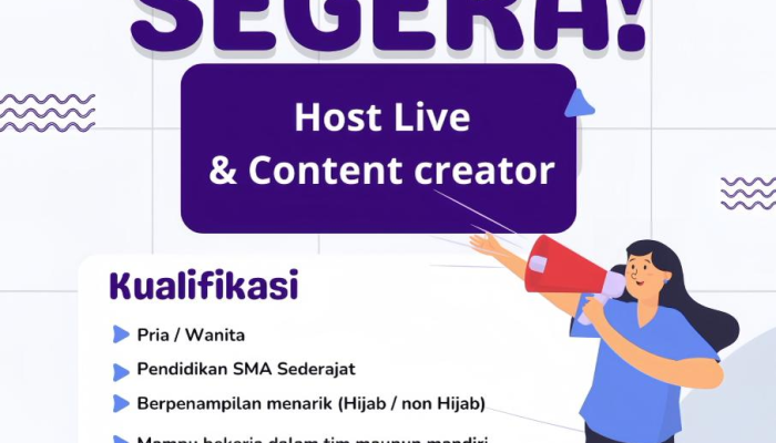 Jika Anda hobi berada di depan kamera, mahir melakukan live streaming di berbagai platform media sosial, dan memiliki ide-ide segar untuk konten digital, lowongan ini adalah kesempatan karir yang tepat untuk Anda di wilayah Rajapolah, Tasikmalaya.