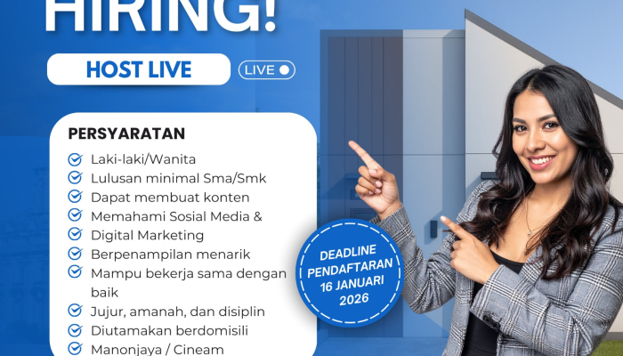 Apakah Anda pribadi yang percaya diri di depan kamera, kreatif, dan mahir dalam strategi pemasaran digital? Bumi Cilangkap Permai (BCP) saat ini sedang membuka kesempatan karir bagi Anda yang berbakat untuk mengisi posisi Host Live. Jika Anda memiliki kemampuan komunikasi yang persuasif dan ingin berkembang di industri properti melalui media sosial, inilah peluang karir yang tepat untuk Anda.