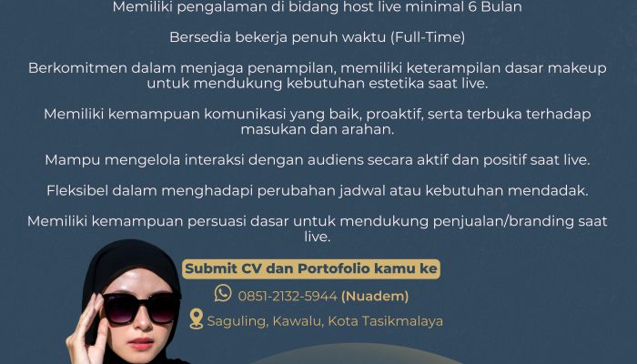 3. Lowongan Kerja Experienced Host Live Nuadem di Tasikmalaya (Full-Time)