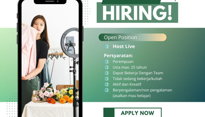 Apakah Anda seorang perempuan muda yang aktif, kreatif, dan percaya diri di depan kamera? HIH Creative Studio sedang membuka kesempatan karir menarik bagi Anda untuk bergabung sebagai Host Live. Jika Anda memiliki semangat untuk berinteraksi dengan audiens dan ingin berkembang di industri konten digital, inilah saatnya Anda bersinar bersama kami di Tasikmalaya!