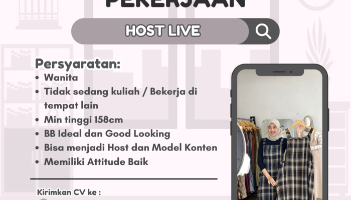 Saat ini kami membutuhkan talenta terbaik untuk mengisi posisi ganda yang dinamis: Host Live & Model Konten. Jika Anda adalah pribadi yang menarik, memiliki attitude yang baik, dan siap bekerja secara penuh, maka inilah kesempatan yang Anda tunggu!