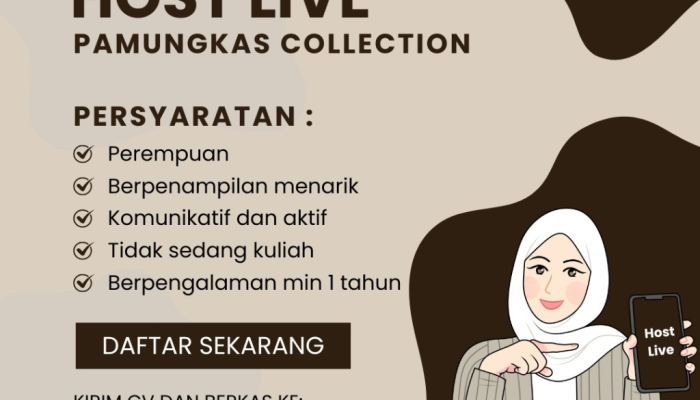 Apakah Anda seorang wanita yang komunikatif, percaya diri di depan kamera, dan ingin berkarir di dunia e-commerce yang sedang berkembang pesat? Pamungkas Collection sedang membuka kesempatan emas bagi Anda untuk bergabung sebagai Host Live Streaming.