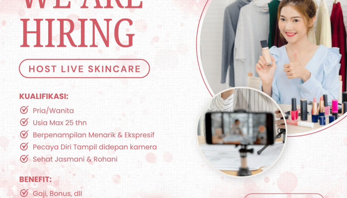 Menjadi seorang Host Live di industri kecantikan bukan hanya sekadar berjualan, melainkan memberikan edukasi dan solusi bagi para pencari produk perawatan kulit. Jika Anda memiliki antusiasme tinggi di bidang beauty dan senang berinteraksi dengan audiens secara digital, lowongan ini adalah kesempatan karir yang sangat menarik untuk Anda kembangkan di area Tasikmalaya.