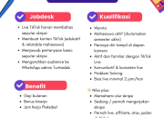 Kami mencari talenta muda yang dinamis untuk berinteraksi dengan audiens dan mempromosikan produk kami melalui platform digital populer. Jika Anda memiliki kemampuan public speaking yang menarik dan menguasai alat pengeditan konten sederhana, inilah saatnya bergabung bersama tim kami!