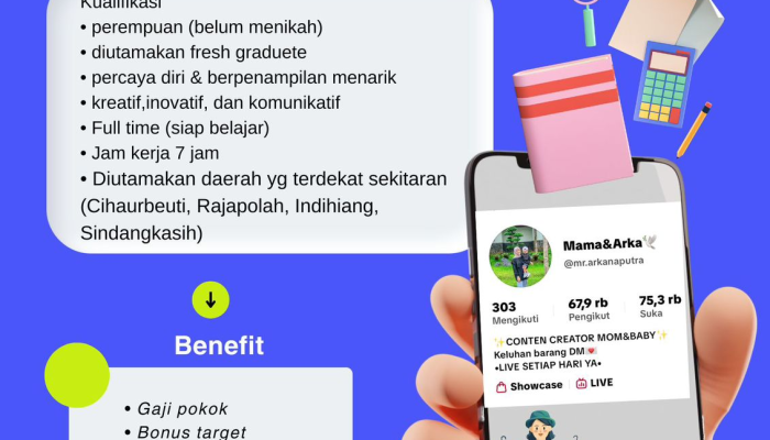 Posisi ini cocok bagi Anda yang ingin membangun karir host live streaming di Tasikmalaya tanpa harus memiliki pengalaman panjang.