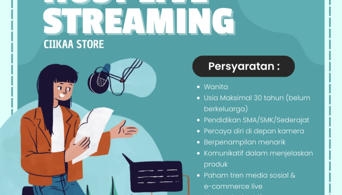 Apakah Anda seorang wanita kreatif yang percaya diri di depan kamera? CIIKAA STORE sedang membuka lowongan pekerjaan untuk posisi Host Live Streaming. Kami mencari individu yang bersemangat untuk mempromosikan produk kami melalui platform e-commerce live dengan gaya yang menarik dan komunikatif.