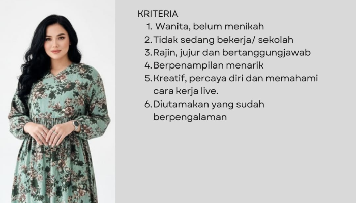 Untuk melamar posisi Host Live Streaming ini, calon pelamar harus memenuhi kriteria yang ketat sebagai berikut: