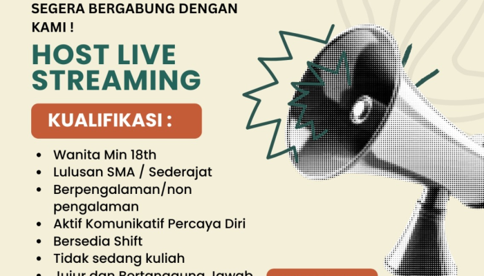 Apakah kamu seorang wanita muda yang percaya diri, komunikatif, dan senang tampil di depan kamera? Saat ini dibuka kesempatan lowongan kerja sebagai Host Live Streaming di Tasikmalaya. Posisi ini terbuka untuk lulusan SMA/sederajat, baik yang sudah berpengalaman maupun belum, karena perusahaan akan memberikan pelatihan khusus hingga bisa.