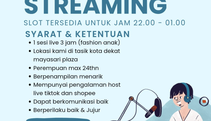 Bagi Anda yang siap menunjukkan talenta sebagai host live, segera kirimkan berkas lamaran Anda melalui: