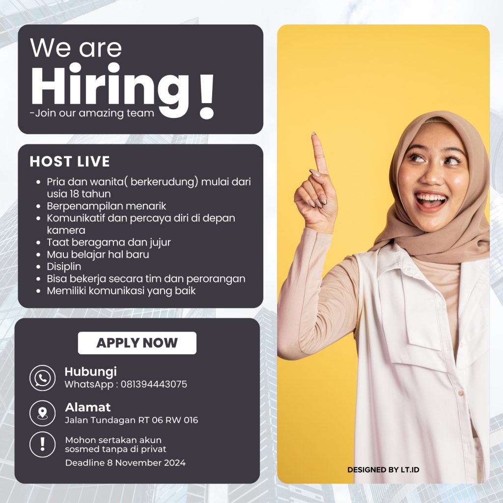 Lokertasikmalaya.ID – Update Info lowongan Kerja 4 November 2024, Lowongan Kerja Host Live Streaming