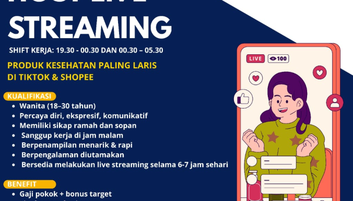 Lowongan Kerja Host Live Streaming Produk Kesehatan di Tasikmalaya – Gaji Pokok & Bonus Menarik!