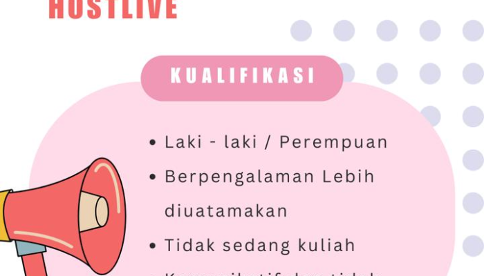 Apakah Anda pribadi yang energik, komunikatif, dan senang berinteraksi dengan audiens secara langsung? Saat ini sedang dibuka lowongan kerja mendesak (Dibutuhkan Segera) untuk posisi Host Live penempatan di wilayah Kawalu, Tasikmalaya.