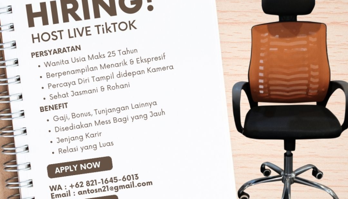 Apakah Anda seorang wanita muda yang energik, komunikatif, dan hobi tampil di depan kamera? Ini adalah kesempatan emas untuk berkarier di dunia digital! Kami sedang membuka lowongan kerja sebagai Host Live TikTok untuk bergabung bersama tim kami yang dinamis di Tasikmalaya.