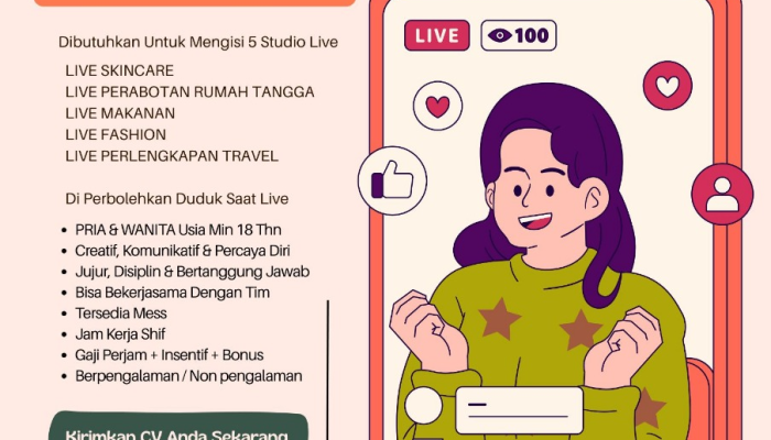 - Berpengalaman / Non pengalaman (Lulusan baru atau yang belum pernah menjadi host live sangat dipersilakan melamar).