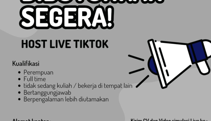 Apakah Anda seorang wanita yang komunikatif, percaya diri di depan kamera, dan berdomisili di Tasikmalaya? Zacksscoot.Studios sedang membuka lowongan kerja terbaru sebagai Host Live TikTok. Kami mencari individu yang kreatif dan bersemangat untuk menjadi wajah dari brand kami di platform media sosial yang sedang tren saat ini.