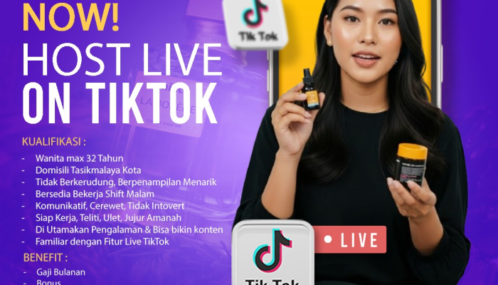 Peluang emas datang untuk Anda yang enerjik, komunikatif, dan bersemangat tampil di depan kamera! Zevanya Store sedang mencari individu berbakat untuk mengisi posisi sebagai Host Live di TikTok di area Tasikmalaya Kota. Jika Anda familiar dengan fitur Live TikTok, suka berbicara, ceria, dan siap bekerja shift malam, inilah saatnya Anda mengembangkan karir di industri e-commerce dan social commerce yang sedang booming. Baca detail kualifikasi dan benefit yang ditawarkan, dan jangan tunda untuk melamar sebelum batas waktu!
