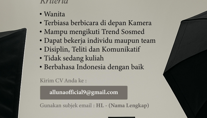 2. Kirimkan CV Anda melalui Email ke: allunaofficial9@gmail.com