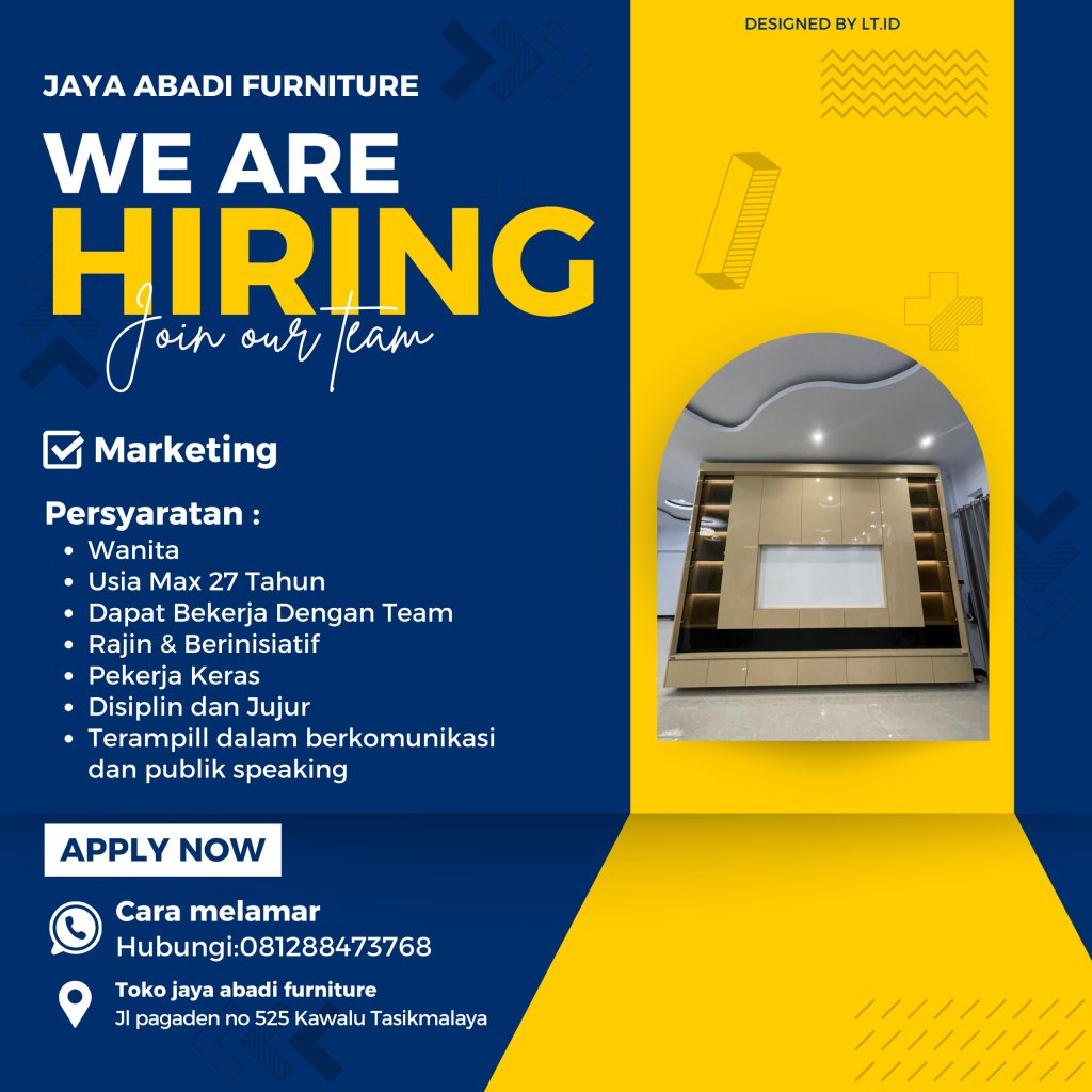 Lokertasikmalaya.ID – Update Info lowongan Kerja 23 Oktober 2024, Lowongan Kerja Jaya Abadi Furniture