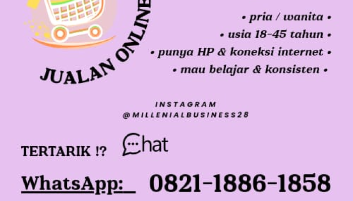 @millenialbusiness28 adalah komunitas atau bisnis online yang berfokus pada pelatihan dan praktik Jualan Online. Kami menyediakan platform dan bimbingan bagi individu yang ingin menghasilkan pendapatan tambahan melalui internet. Dengan sistem kerja yang fleksibel, kami memberdayakan siapa pun yang mau belajar dan konsisten, mulai dari pelajar, mahasiswa, ibu rumah tangga, hingga karyawan yang mencari pekerjaan sampingan.