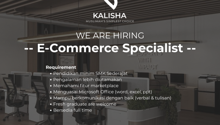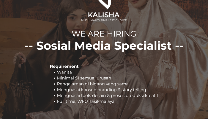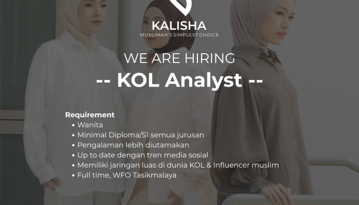 Apakah Anda seorang profesional muda yang dinamis dan ingin berkarir di industri fashion Muslimah? Kalisha (Muslimah’s Simplest Choice) kembali membuka kesempatan karir besar-besaran bagi Anda untuk bergabung dalam tim kreatif dan operasional kami. Berlokasi di Tasikmalaya, Kalisha mengundang talenta-talenta terbaik untuk mengisi berbagai posisi strategis guna mendukung pertumbuhan brand yang semakin pesat.