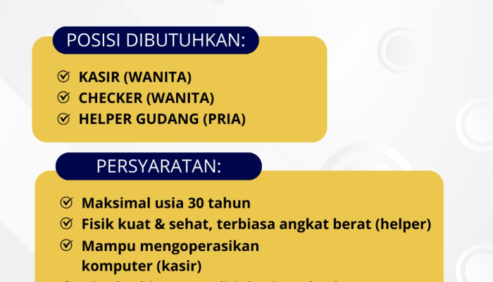 - Keterampilan Khusus Kasir & Checker: Bisa berhitung dan wajib teliti.