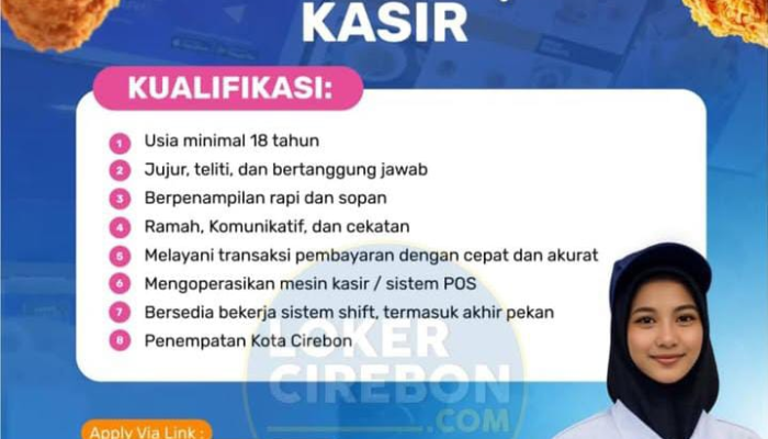 Loker Kasir Cirebon – Apakah Anda sedang mencari peluang karir di industri Food & Beverage (F&B) yang sedang berkembang pesat? J.Chicken, salah satu jaringan restoran ayam goreng populer, saat ini membuka kesempatan bagi Anda untuk bergabung sebagai tenaga profesional di posisi Kasir untuk penempatan wilayah Kota Cirebon.