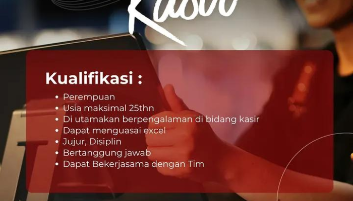 • Pengalaman: Diutamakan memiliki pengalaman di bidang kasir.