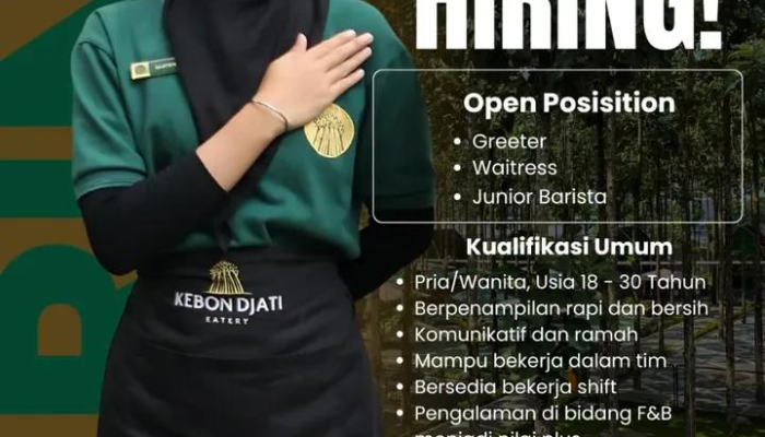 Loker Kebon Djati Eatery Tasikmalaya 2026 – Apakah Anda pribadi yang ramah, komunikatif, dan ingin berkarir di industri kuliner yang sedang berkembang? Kebon Djati Eatery, salah satu destinasi kuliner favorit di Tasikmalaya, sedang membuka kesempatan karir bagi talenta muda berbakat untuk mengisi beberapa posisi operasional.