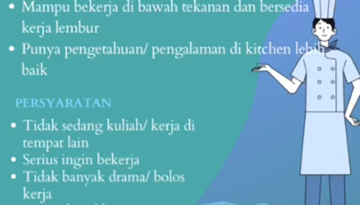 - Nilai Tambah: Memiliki pengetahuan atau pengalaman di bidang dapur lebih diutamakan.