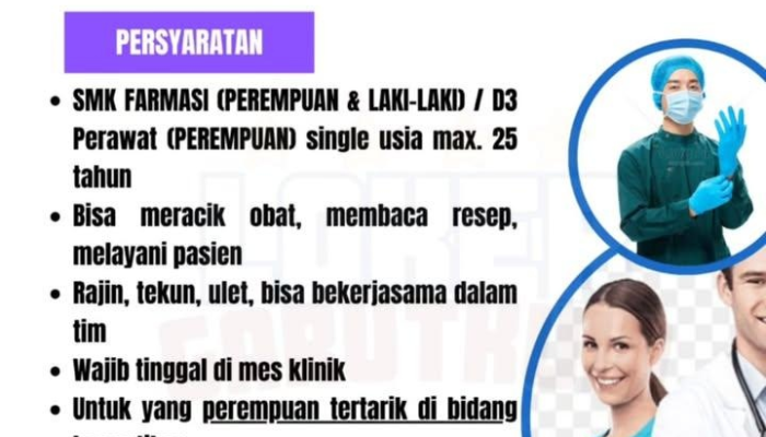 - SMK Farmasi (Tersedia untuk pelamar Perempuan & Laki-laki).