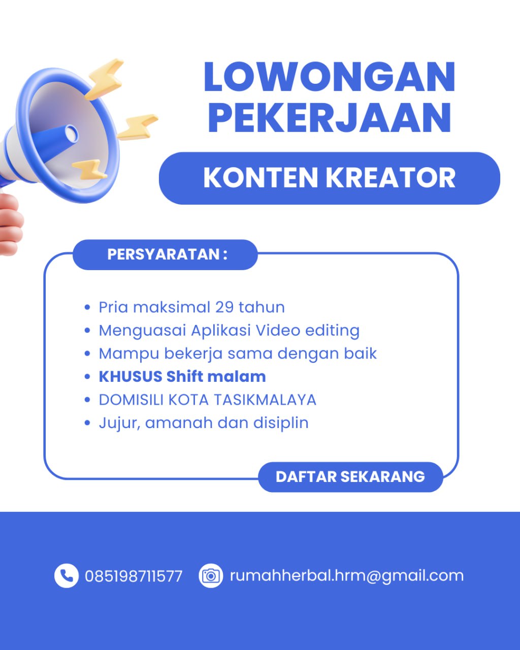 Lokertasikmalaya.ID – Update Info lowongan Kerja 12 Mei 2025 Lowongan Kerja Konten Kreator