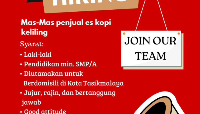 Apakah Anda sedang mencari pekerjaan lapangan yang dinamis dengan peluang penghasilan menarik? Kopi Kopling, unit usaha es kopi keliling yang populer di wilayah Tasikmalaya, sedang membuka kesempatan bergabung bagi Anda yang energik dan memiliki semangat berjualan tinggi untuk posisi Mas-Mas Penjual Es Kopi Keliling.