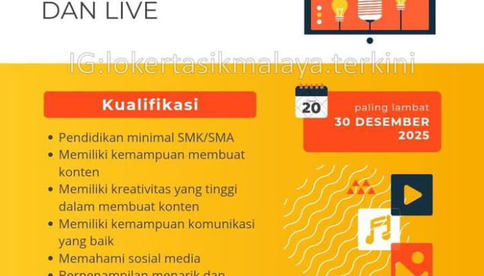Jika kamu tertarik melamar loker Kreator Konten dan Live Tasikmalaya, silakan: