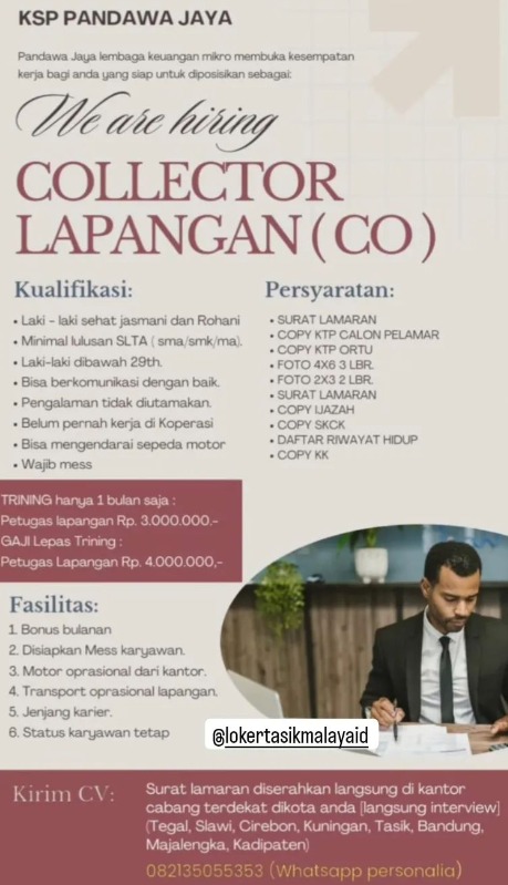 Lokertasikmalaya.ID – Update Info lowongan Kerja 6 Januari 2025, Lowongan Kerja KSP Pandawa Jaya