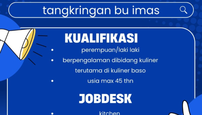 Apakah Anda memiliki keahlian di bidang kuliner dan sedang mencari peluang karir di Tasikmalaya? Tangkringan Bu Imas, unit usaha kuliner yang sedang berkembang, kini membuka lowongan pekerjaan bagi Anda yang berdedikasi dan memiliki pengalaman, khususnya di bidang kuliner bakso. Bergabunglah dengan tim kami untuk memberikan pengalaman kuliner terbaik bagi pelanggan di wilayah Cihideung dan sekitarnya.
