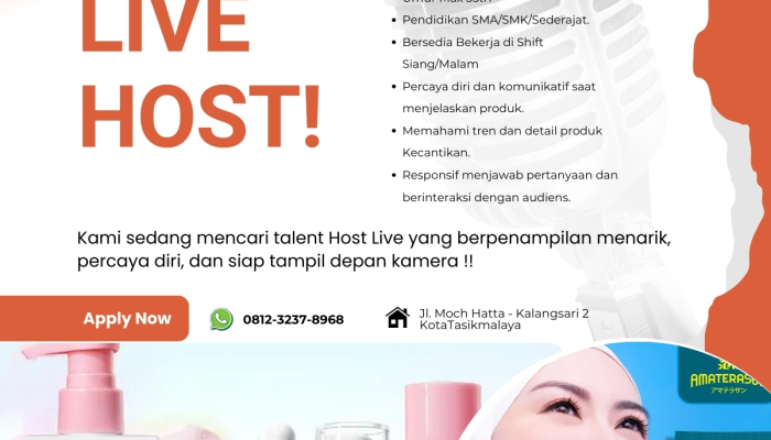 Peluang menarik datang untuk Anda yang enerjik, komunikatif, dan memiliki ketertarikan mendalam pada dunia kecantikan dan perawatan kulit! elbeauty.skin sedang mencari LIVE HOST berbakat untuk bergabung dengan tim digital marketing. Jika Anda seorang individu yang percaya diri, siap bekerja shift (siang/malam), dan mampu menjelaskan produk kecantikan dengan detail, inilah kesempatan Anda untuk menjadi wajah utama brand di Kota Tasikmalaya. Baca detail lengkapnya dan segera kirimkan lamaran Anda!